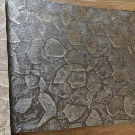 - в основе минеральной составляющей - каменный порошок из карьеров, нанесенный на рельефную основу с рисунком. Абсолютно экологичное производство, не требующее применения большого количества воды или вырубки деревьев.